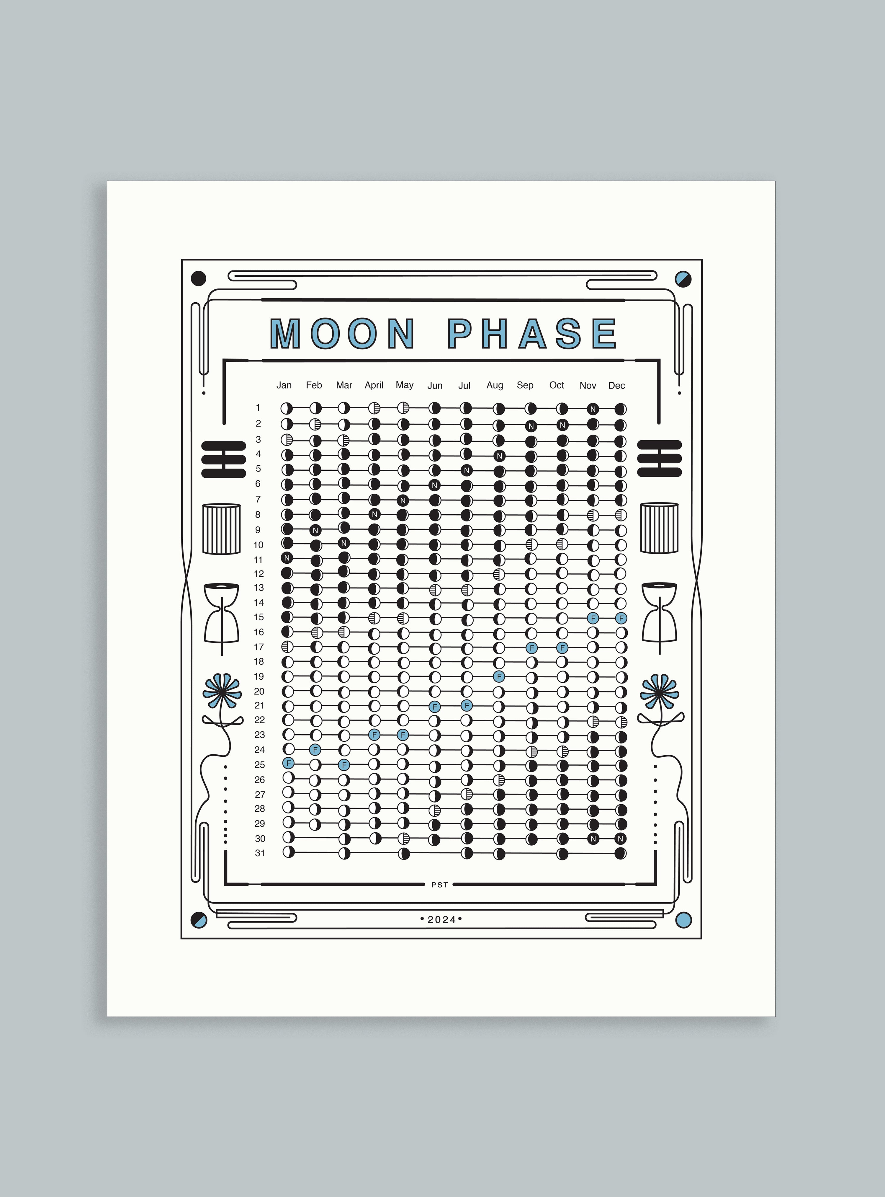Source : annieaxtell.com2024 Moon Phase Chart 11 X 14 Lunar Phase Calendar Phases of the